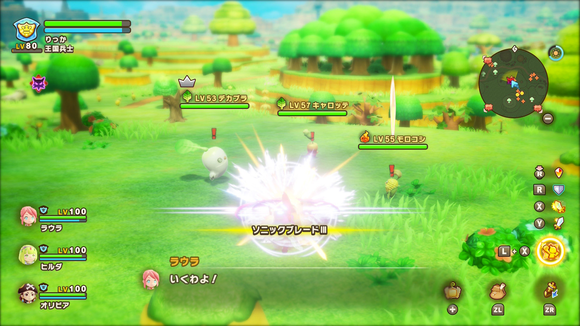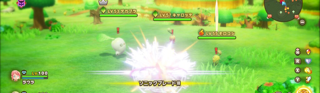 オープンワールド「バカデッカーナ大陸」のエリアランク上げはやり込みの核としてかなり強い。採取や戦闘でポイントを稼いでランクを上げると、敵や素材が強化されたり、新たな中ボスが湧くようになり、次の目標が自然に生まれる作りになっている。