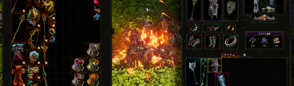 ただ、エンドゲームに入ってからは即死が急に増え、何が原因なのか掴みにくいのがストレス。モノリスはエコーの修飾次第で難度が跳ねやすく、気付いたらワンパンされていることがよくあるらしい?エンドコンテンツまで到達するのは2回目だが、即死の頻度が増えると「ここらがビルドの限界か」と急に飽きが来る。ドロップ厳選は好きだけど、クラフトは面倒で深追いするモチベにはならなかった。